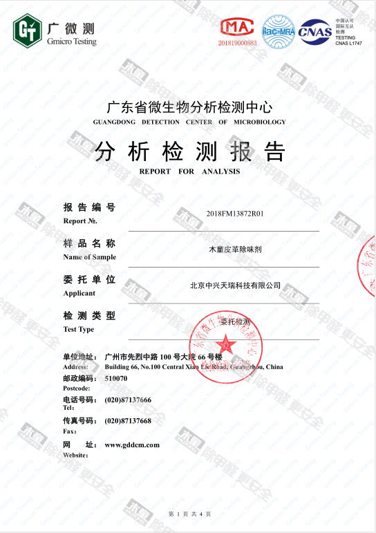 木童皮革除味劑甲醛去除率檢測(cè)報(bào)告